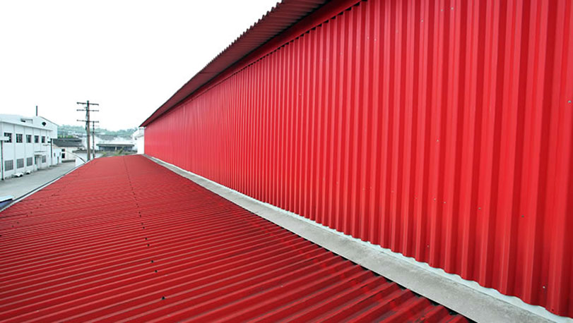 1993年建設。采用寶鋼緋紅PE聚酯彩涂,熱鍍鋅基板,鍍鋅量為180克/平方米,鋼種為TSt01。使用了十八年后,涂層顏色依然鮮艷,涂層厚度更是與出廠厚度接近,達到19.8微米,涂膜保存完好。