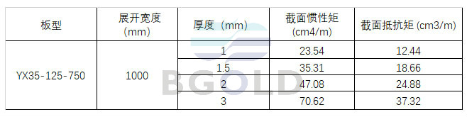 樓面鋼承板YX35-125-750型截面參數: