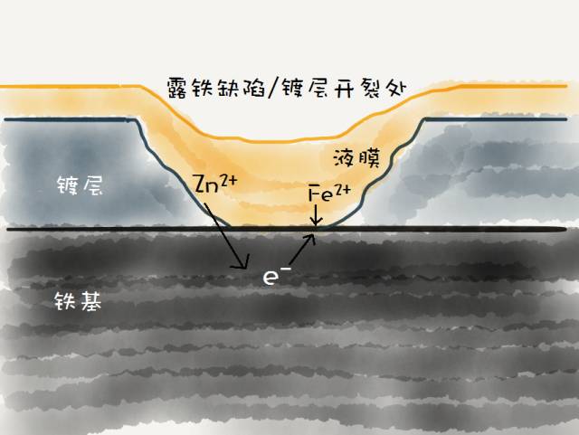 缺陷的地方發生了一個舍小我保大我的電化學保護