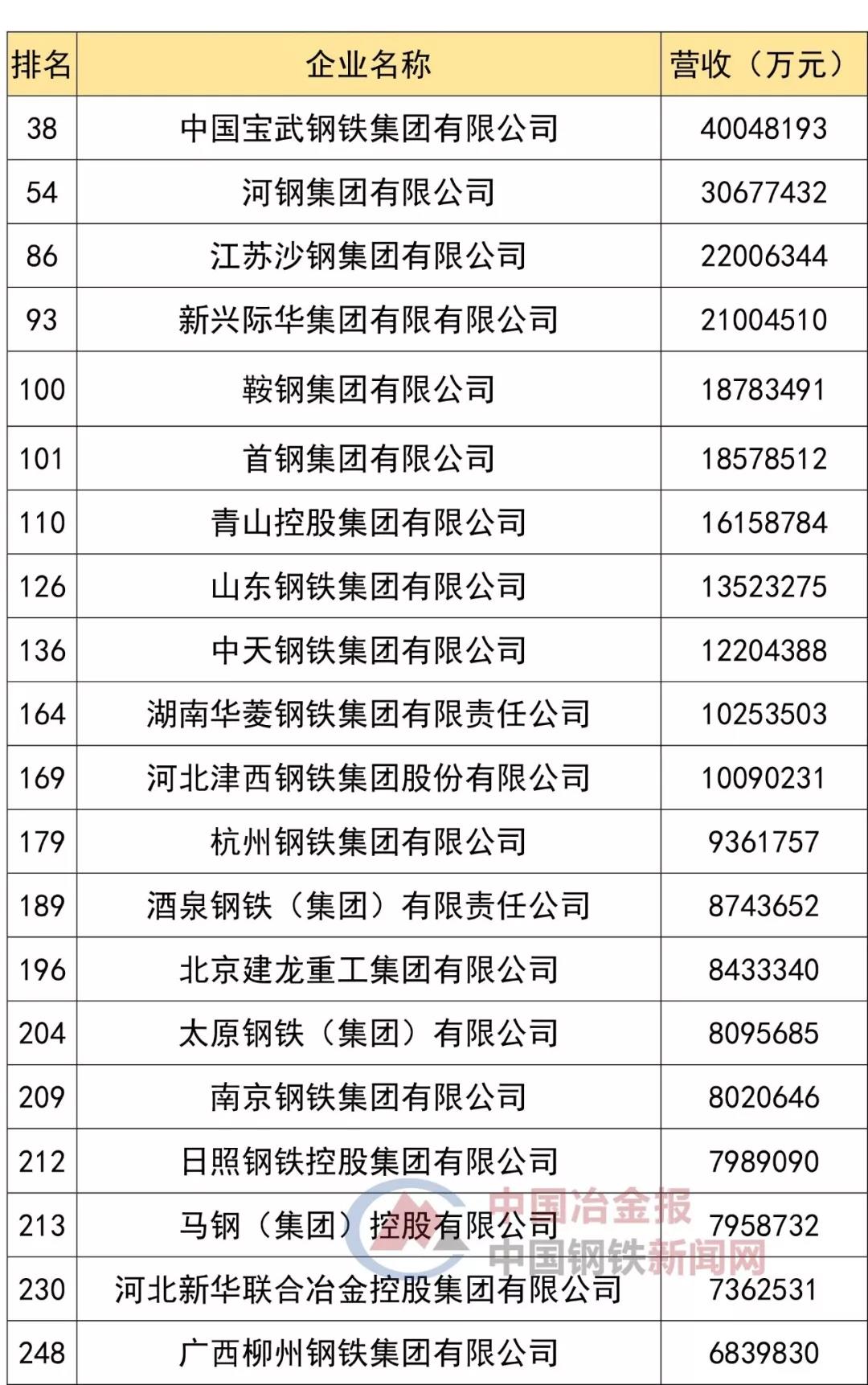 《中國冶金報》、中國鋼鐵新聞網記者梳理了一下,今年榜單具有以下一些特點:
